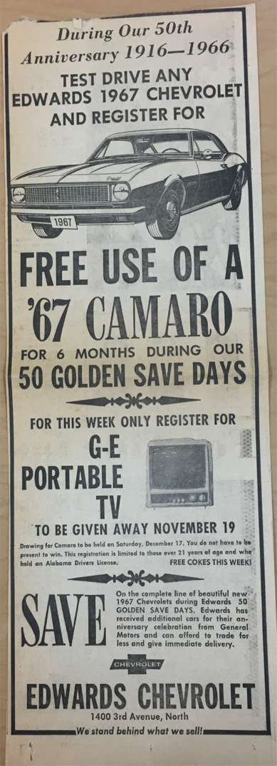 From Sterling Edwards opening Alabama’s first Chevrolet dealership in downtown Birmingham to celebrating our 100th anniversary in 2016, Edwards Chevrolet has weathered many challenges, including two World Wars, the Great Depression, the 1966 Fire, and the Great Recession.